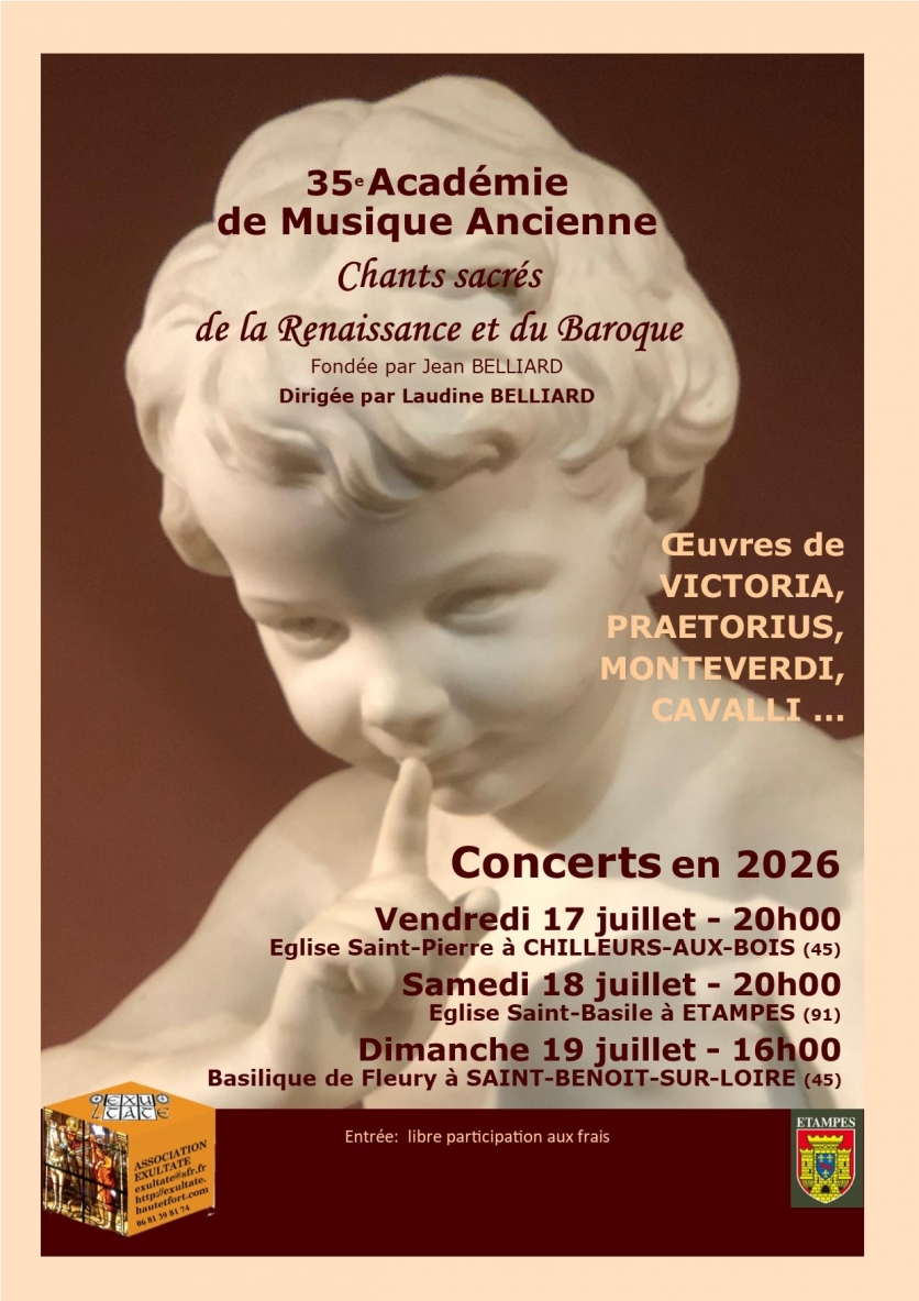 2026. 14. janvier 35e Académie de Musique Ancienne d'Etampes Tweet Les inscriptions sont ouvertes ! Lire la suite Lien permanent Catégories : l'Académie de Musique Ancienne - Chants sacrés de 0 commentaire